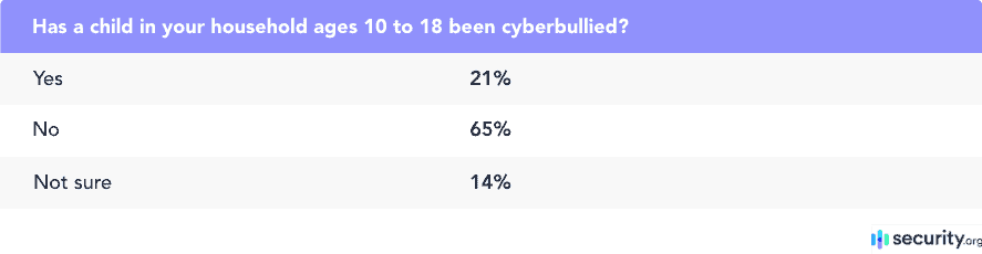 Being online necessarily means using your personal information to create accounts, whether that’s your name, email, bank account information, and more, so it stands to reason that kids who are online more are more susceptible to identity theft and even cyberbullying. However, we were surprised to find out that kids who are the victims of cyberbullying are nine times more likely to be fraud victims than kids who weren’t cyberbullied, according to Javelin Strategy. In our recent research on cyberbullying, we found that about a fifth of parents with kids ages 10 to 18 said their children had been cyberbullied before, making this sizable portion of the population more susceptible to identity theft as well.